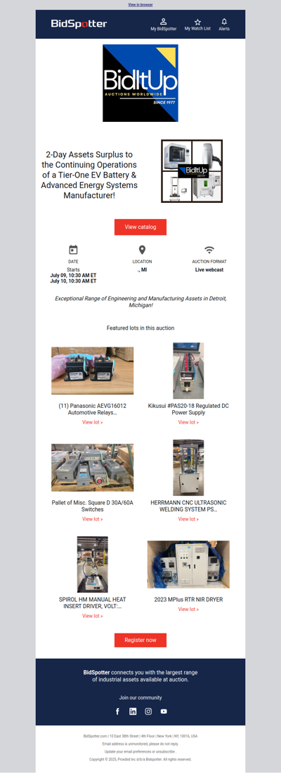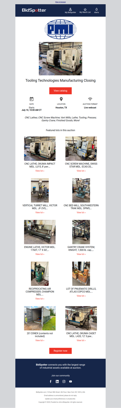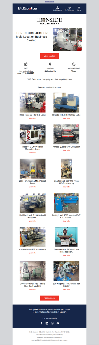 bidspotter.com is an online auction platform that specializes in industrial and commercial equipment. It connects buyers with a wide range of auction listings, including machinery, tools, and real estate from various industries. Users can browse upcoming auctions, place bids in real-time, and access detailed descriptions and images of items. BidSpotter aims to provide a convenient and efficient way for businesses and individuals to buy and sell equipment, making it a valuable resource for those looking to participate in online auctions.