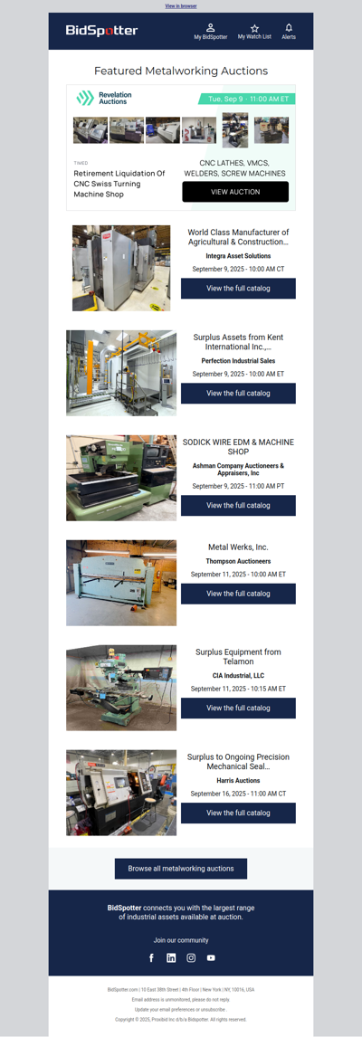 bidspotter.com is an online auction platform that specializes in industrial and commercial equipment. It connects buyers with a wide range of auction listings, including machinery, tools, and real estate from various industries. Users can browse upcoming auctions, place bids in real-time, and access detailed descriptions and images of items. BidSpotter aims to provide a convenient and efficient way for businesses and individuals to buy and sell equipment, making it a valuable resource for those looking to participate in online auctions.