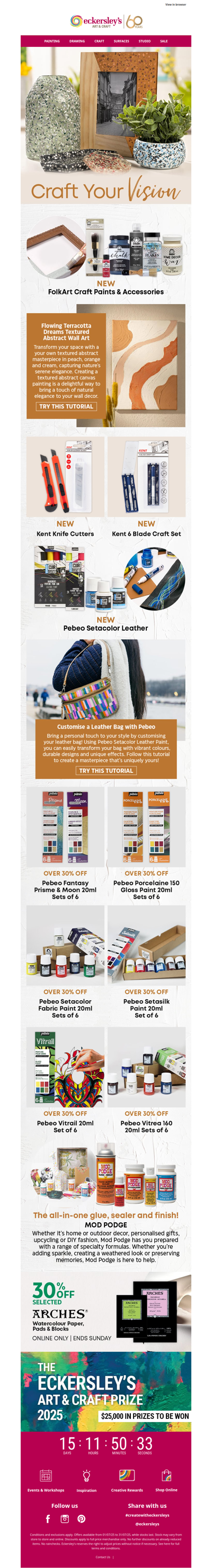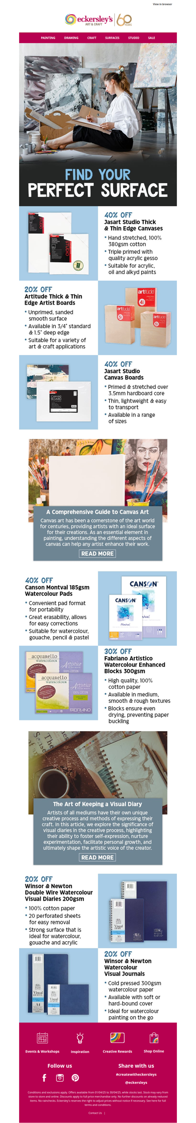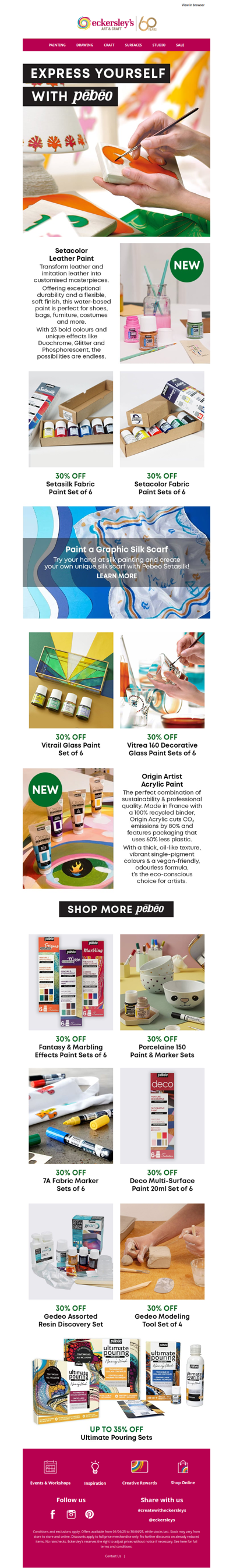 Eckersley's is an Australian retailer specializing in art and craft supplies, offering products such as paints, brushes, markers, adhesives, and more. The company operates multiple stores across Australia, as well as an online shop. They stock a wide range of materials for various forms of visual art, including painting, printmaking, drawing, and crafting. Popular brands like Copic, Jacquard, and Kaisercraft are available, catering to both amateur and professional artists.