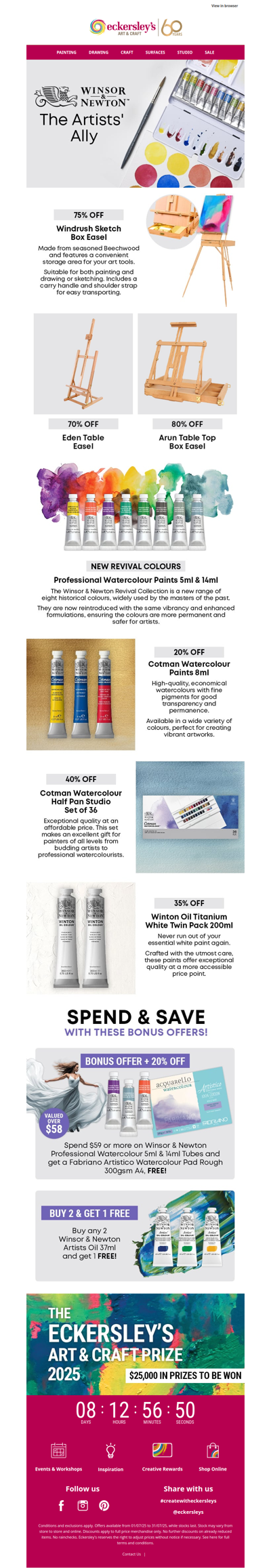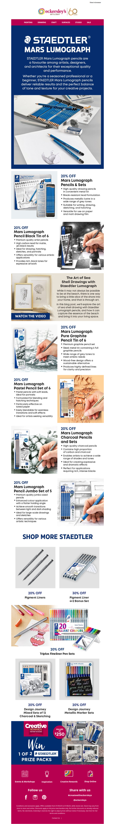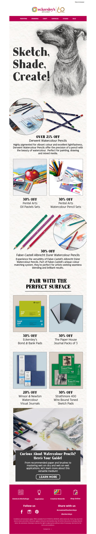 Eckersley's is an Australian retailer specializing in art and craft supplies, offering products such as paints, brushes, markers, adhesives, and more. The company operates multiple stores across Australia, as well as an online shop. They stock a wide range of materials for various forms of visual art, including painting, printmaking, drawing, and crafting. Popular brands like Copic, Jacquard, and Kaisercraft are available, catering to both amateur and professional artists.