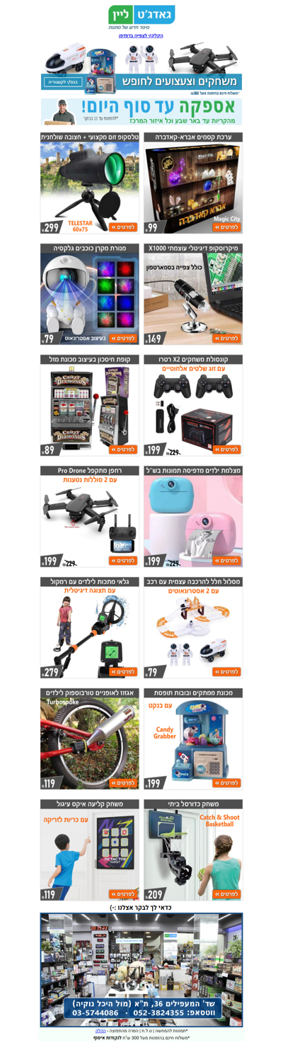 🎁 שמחת תורה עם משחקים וגאדג'טים חדשים באתר ובחנות גאדג'טליין | פרסומת