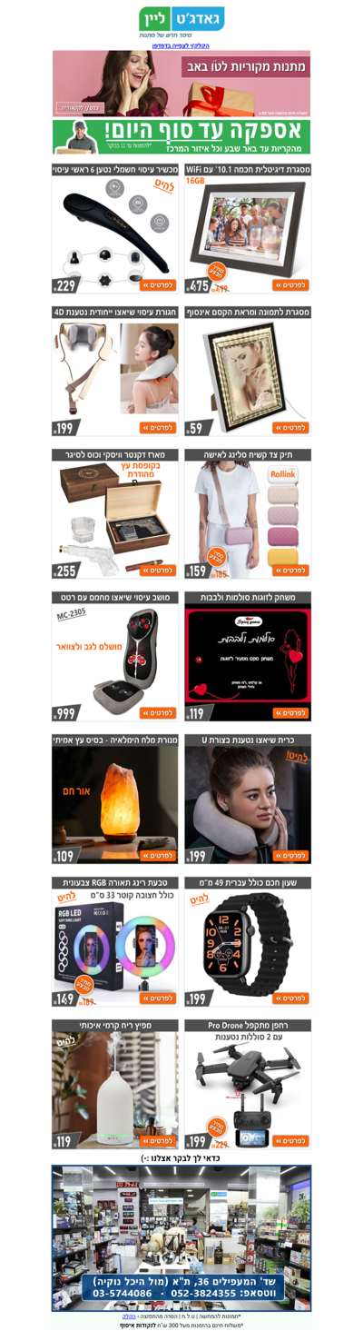 🎁 גאדג'טים חדשים ומדליקים באתר ובחנות גאדג'טליין | פרסומת