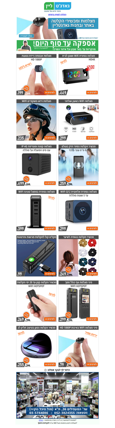 🎁 שבוע חדש עם מצלמות ומכשירי הקלטה במבצע בחנות ובאתר! | פרסומת