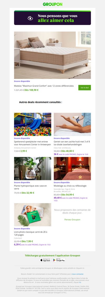 Groupon.be is the Belgian version of Groupon, a platform that offers deals and discounts on various products and services. You can find discounts on dining, travel, activities, and more.