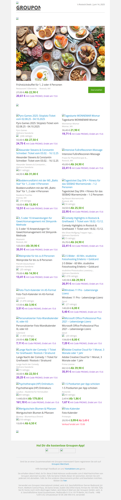 Groupon.de is the German version of Groupon, offering deals and discounts on a variety of products and services in Germany. You can find promotions on things like dining, travel, activities, and more.