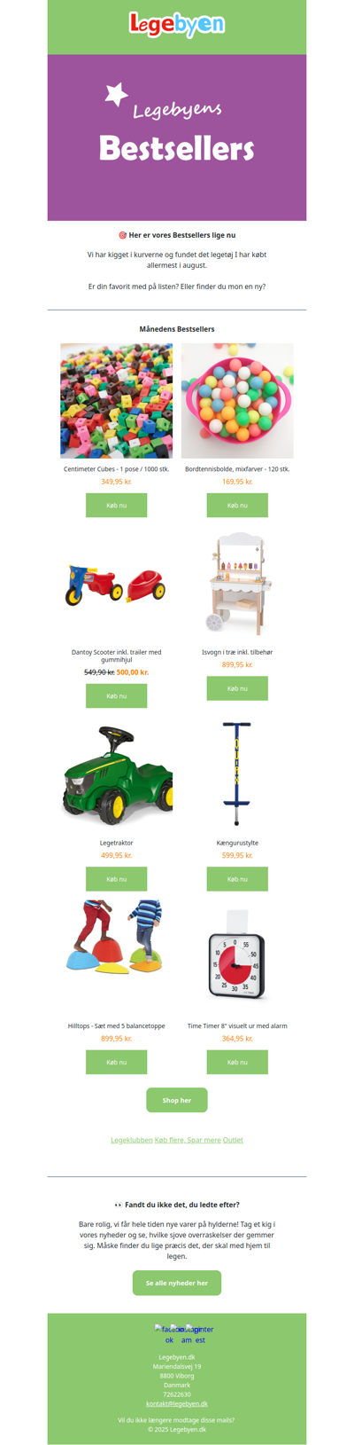 legebyen.dk is a Danish online toy store offering a wide selection of toys for children of all ages. The site features popular brands, educational games, and outdoor play equipment, ensuring a diverse range of products to stimulate creativity and learning. With user-friendly navigation and detailed product descriptions, customers can easily find the perfect gifts for birthdays and special occasions. Legebyen focuses on quality, safety, and customer satisfaction, making it a go-to destination for parents and gift-givers.