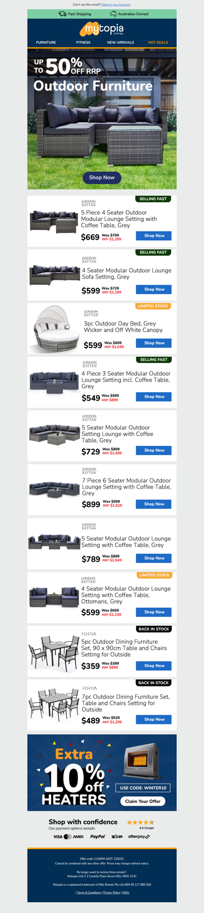 We are a fast-growing online retailer of home and lifestyle products for the indoors and outdoors. Our products range from treadmills to BBQs to kids toys to outdoor furniture! Established for over 10 years, we are one of Australia's leading and fastest-growing e-commerce companies. Our success has seen us featured in BRW fast-starters, Sydney Morning Herald, A Current Affair and Sunrise. We're the Aussie underdogs taking on the big retailers.