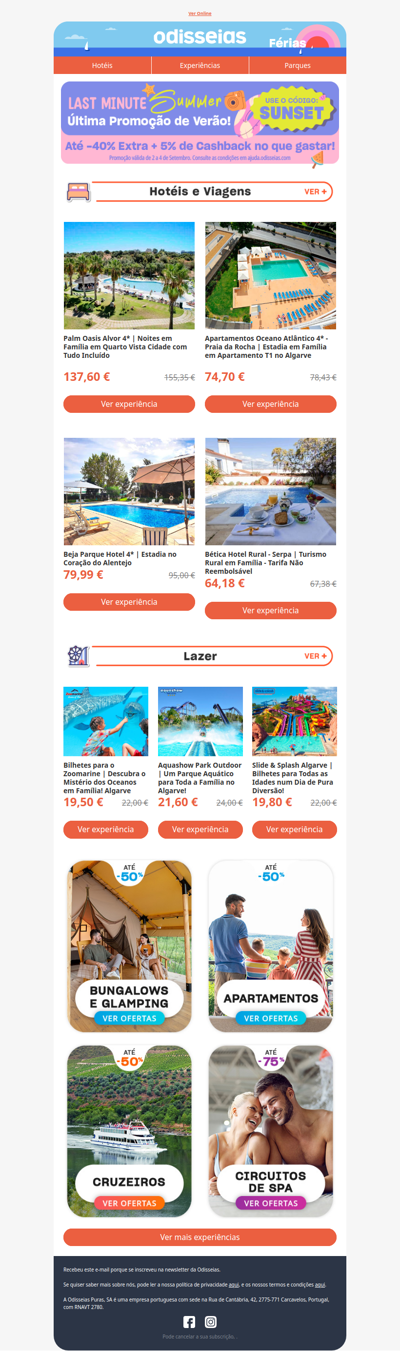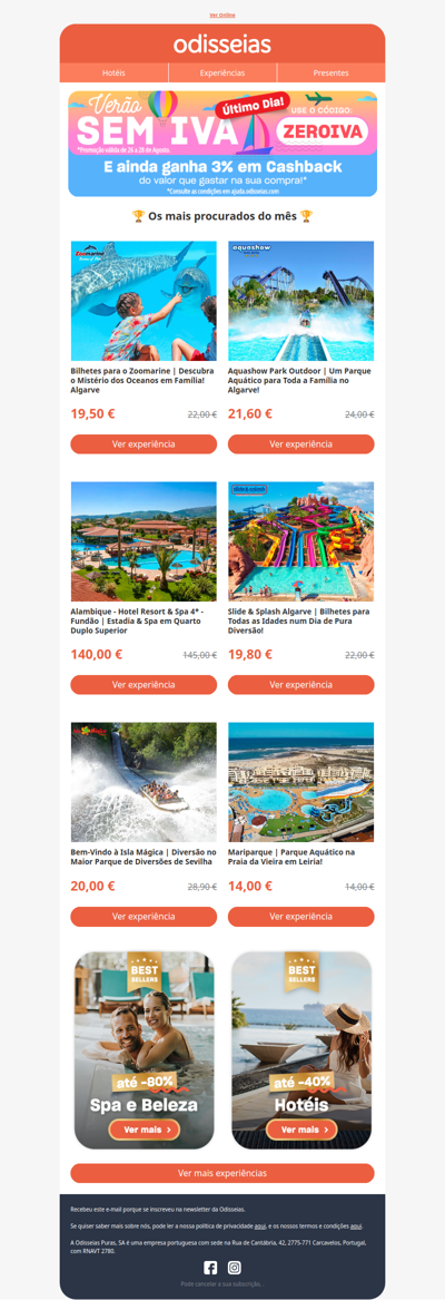 Odisseias.com is a Portuguese website that specializes in offering a variety of unique experiences and gifts. It features a wide range of options, including adventure activities, wellness retreats, dining experiences, and travel packages. The platform allows users to easily browse and purchase gift vouchers for memorable experiences, catering to different interests and occasions. Odisseias.com aims to inspire creativity and spontaneity in gift-giving, making it a popular choice for those looking to treat friends and family to something special.