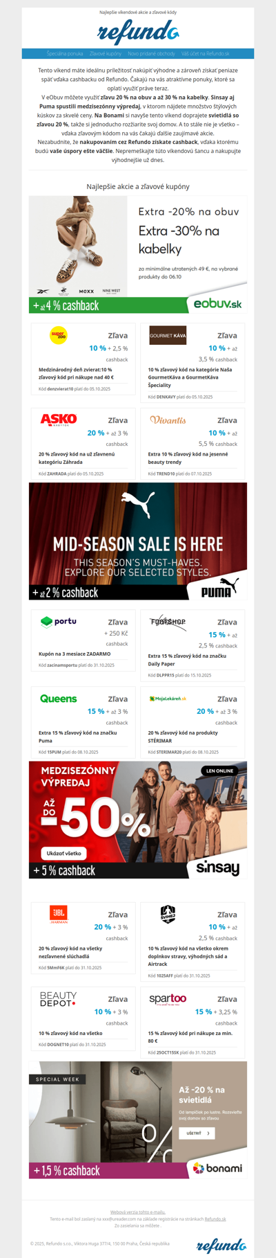 refundo.sk is a Slovak online platform that specializes in cashback and discounts for various online retailers. The site allows users to earn money back on their purchases by shopping through affiliated stores. With a user-friendly interface, customers can easily browse participating retailers and find attractive offers. Refundo.sk aims to help consumers save money while shopping online, making it a valuable resource for savvy shoppers looking to maximize their savings on everyday purchases.