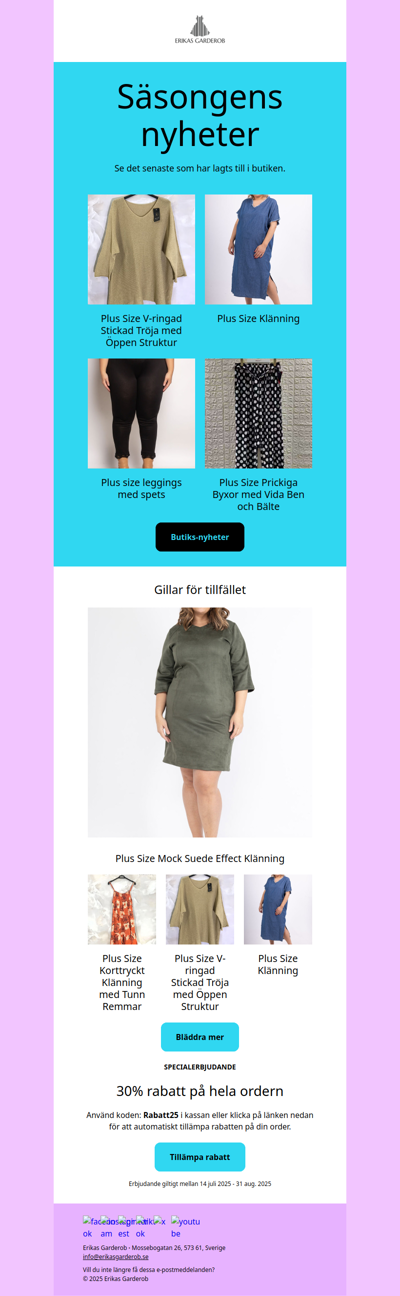 Fri frakt i begränsad tid – fyll garderoben med nya favoriter i storlek 42–60.