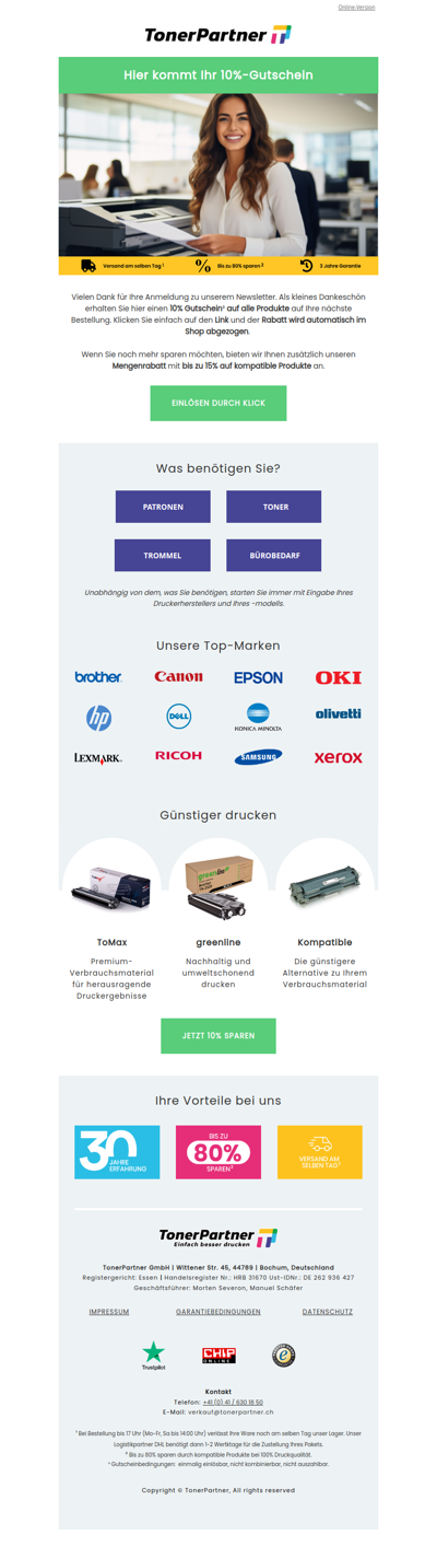 Toner-partner.ch is a Swiss online store specializing in printing supplies, particularly toner cartridges and printer accessories. The site offers a wide selection of products compatible with various printer brands, along with detailed descriptions and specifications. Customers can easily navigate through categories, find competitive prices, and access helpful resources for maintaining their printing equipment. With a focus on quality and customer service, Toner Partner aims to meet the needs of both businesses and individual users in Switzerland.