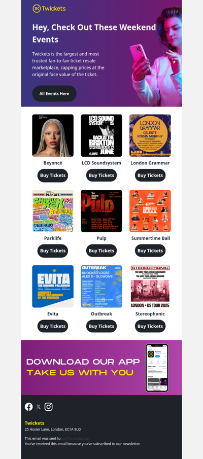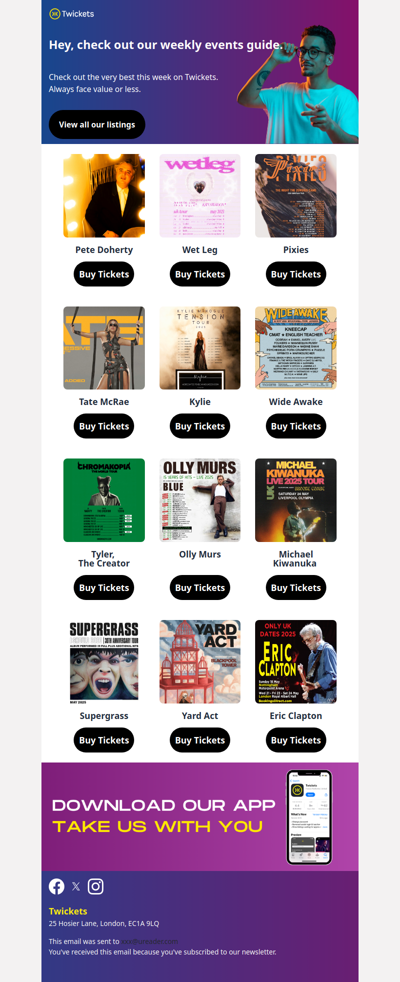 Twickets.live is an online platform that focuses on reselling event tickets, particularly for concerts, sports, and theater performances. The site aims to provide a secure and transparent way for users to buy and sell tickets at face value or lower, promoting fair access to live events. With a user-friendly interface and a commitment to customer service, Twickets strives to enhance the ticketing experience for fans while helping to reduce ticket scalping.