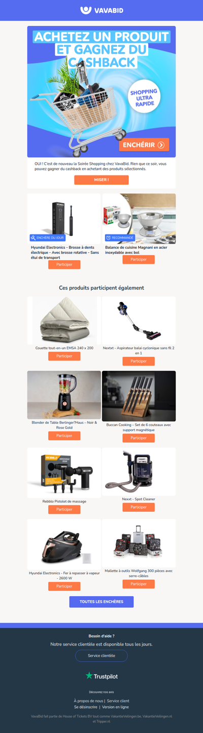 VavaBid.be is an online auction site where users can participate in bidding for various products and experiences, such as vacations, tickets to zoos or parks, gadgets, and more.