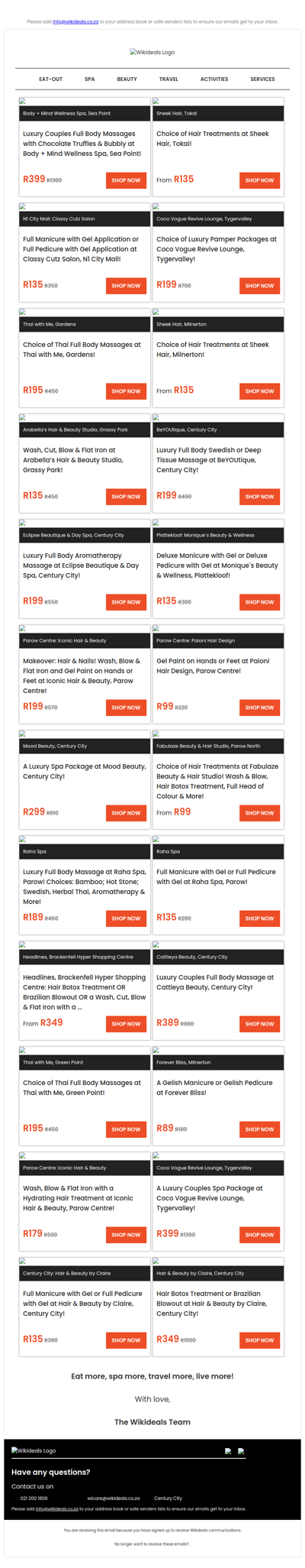 GrandWest: 3-Course Dining Experience at Casa Bella | Tygervalley: Luxury Couples Spa Package Coco Vogue Beauty Bar