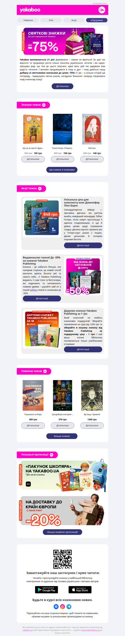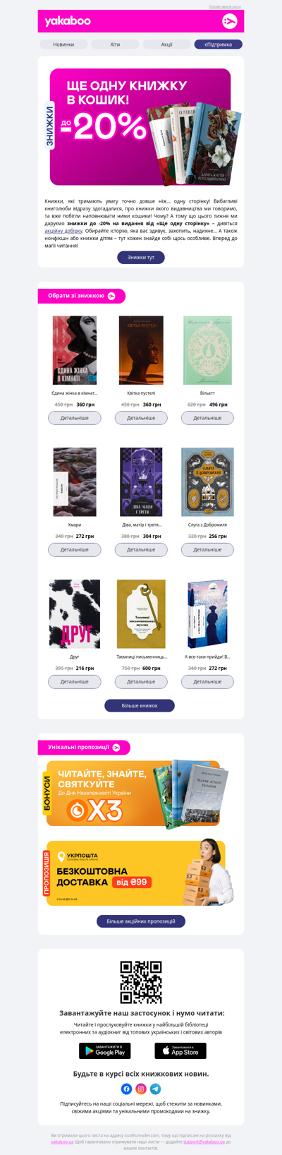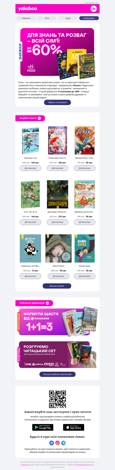 Національна книжкова платформа Yakaboo – це найбільший книжковий онлайн-магазин в Україні. Наша місія – зробити Україну найбільш читаючою країною Європи. Адже народ, який читає навіть під час війни, непереможний.
