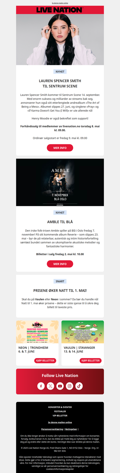 ♫ Live Nationin viikon keikkauutiset! ♫