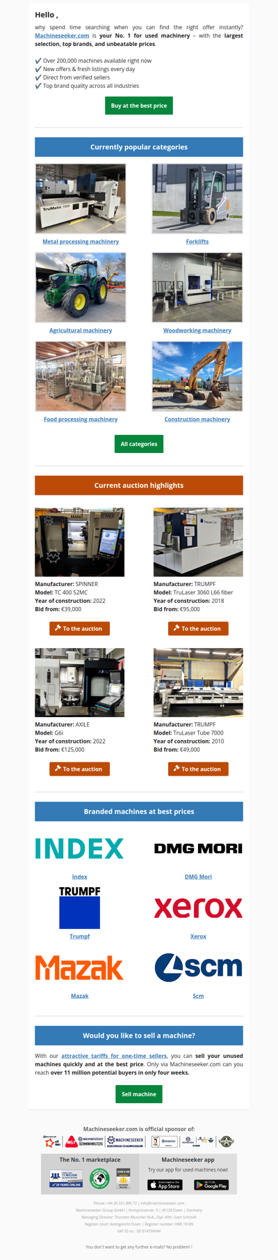 Meccanica: guarda le migliori aste per macchinari e attrezzature