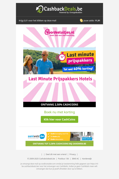 0,40 CashCoins om je alleen aan te melden!