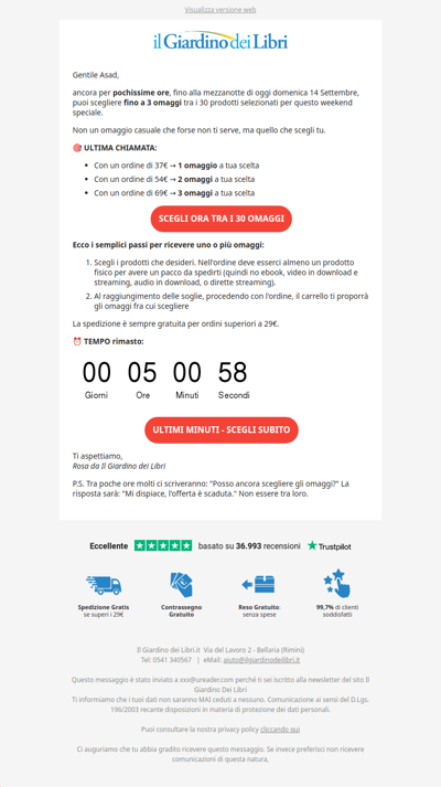⚡️ Scegli il tuo OMAGGIO: vale fino a 33€ (scade domenica)