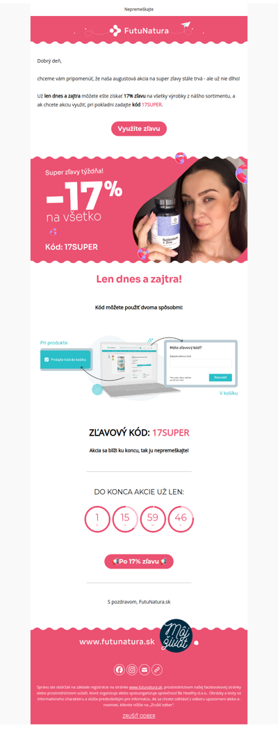 KLIKNI RAZ, UŠETRI VIACKRÁT! 😍 -10% DRMAX / -50% ALZA KÓDY / -5% COFFEEIN / -30% XXXLUTZ / -50% AXA / -80€ SVETKADERNICTVA / 1+1 ASKO / LETENKY OD 39€ / -10% MOJALEKAREN / -20% NOTINO / -21% PANAKEIA / 1+1 LEOEXPRESS / -15% MIDENT / -30% VIVANTIS / -30% MERKURYMARKET / -15% ZDRAVESTRAVOVANIE / -20% TESCOMA / -5% CK DAKA /...