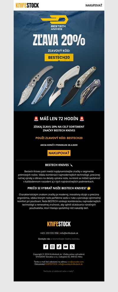 ⏳ Výpredaj končí dnes! 20% zľava na takmer všetko.