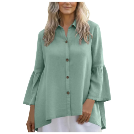 ($4.49) Linen Shirt Spring V Neck Collar