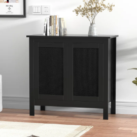 2-Door Black Rattan Storage Cabinet