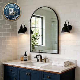 LIFERECORD 20x30 Arched Black Bathroom Mirror