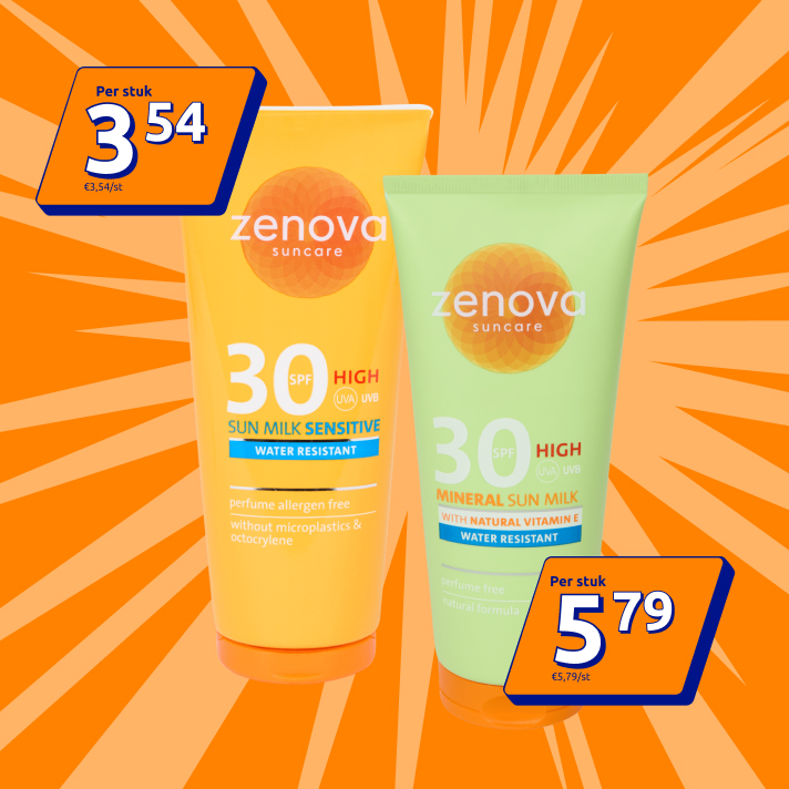 Zenova, onze eigen merk zonnebrand beschermt en verzorgt je huid. Iedere variant is vrij van microplastics, waterbestendig en vegan. En deze week nog scherper geprijsd. Dat smeert extra fijn!