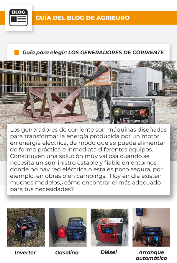 en esta nueva newsletter hablaremos de máquinas indispensables para disponer siempre de energía eléctrica, tanto en casa como en entornos de trabajo o al aire libre, cuando no hay red eléctrica o esta no es suficiente: LOS GENERADORES DE CORRIENTE.