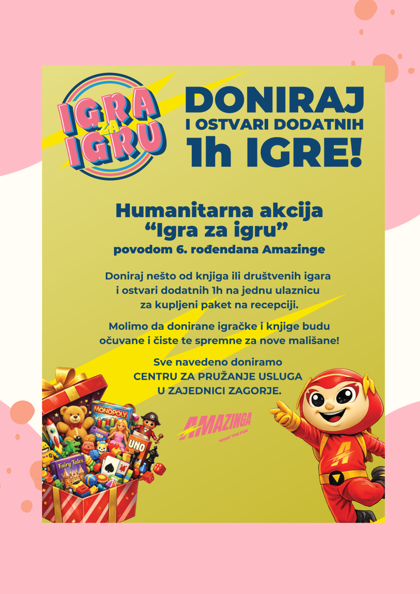 Sve prikupljeno doniramo Centru za pružanje usluga u zajednici Zagorje, kako bismo zajedno uljepšali dane mališanima 💛