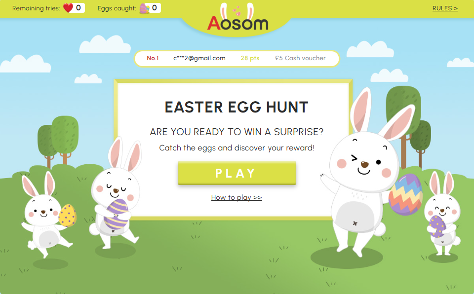 Collect 15 or more eggs in a single round will win a €5 Cash Voucher.