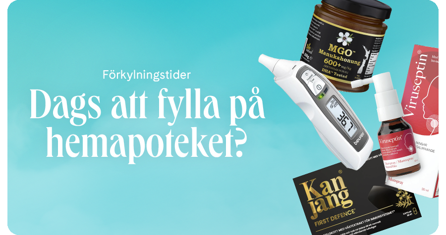 ¹Rabattkoden gäller till och med 25/1 2026. Rabattkoden kan inte kombineras med andra erbjudanden, redan nedsatta produkter för att få rabatt på rabatt eller på receptbelagda läkemedel/varor, receptfria läkemedel, Priorin, Baby Brezza, Sleepy Troll, Sweed, Satisfyer, Footmender, Face Formula, Currentbody Skin, Therabody, modersmjölkersättning eller produkter märkta Nice Price.