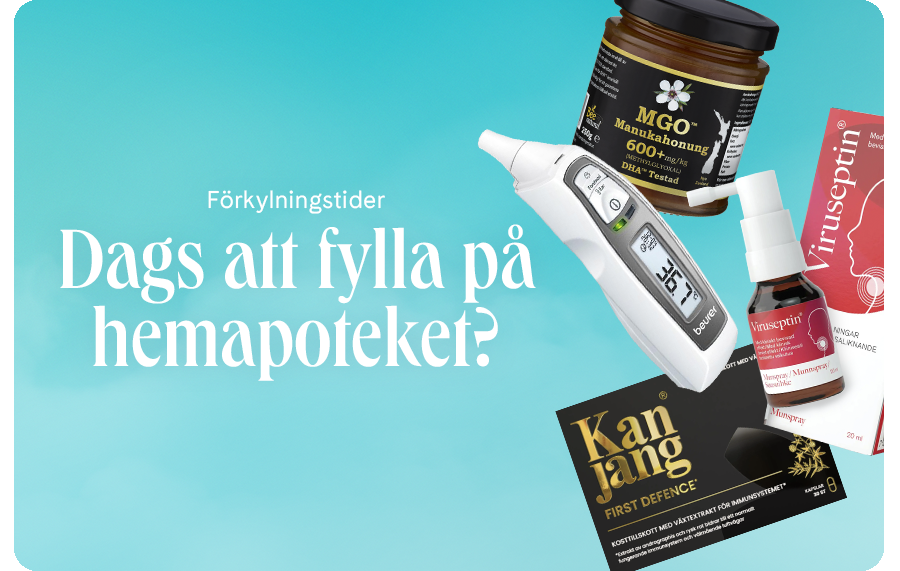 ¹Virusseptin Munspray och Beurer Febertermometer är CE-märkta medicintekniska produkter. Läs bruksanvisning noga före användning. Kan Jang är kosttillskott. Rekommenderad daglig dos bör inte överskridas. Kosttillskott bör inte ersätta en varierad kost och en hälsosam livsstil. Förvaras utom räckhåll för små barn.