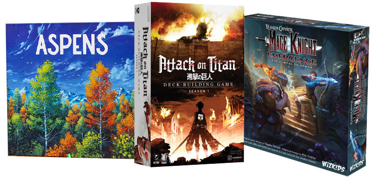 New preorder options for a lot of upcoming board games have been added to our webshop. If you think we are missing anything, feel free to reach out to us! But for now, you can discover a new Mage Knight expansion and the return of the Attack on Titan Deckbuilding game. Oh, and don't forget to have a look at the amazing two-player game: Aspens which will be released shortly.