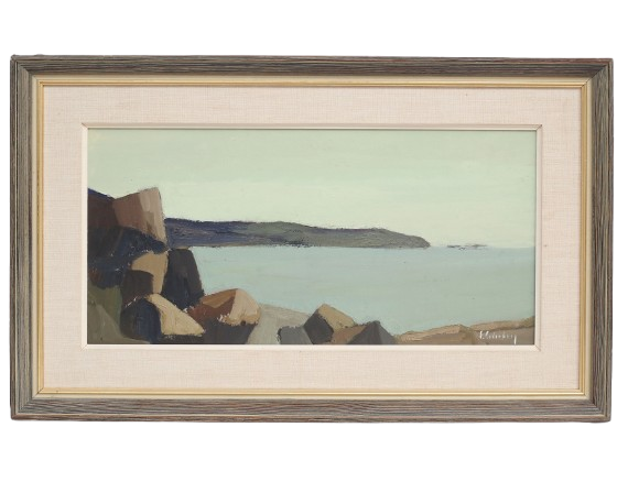 Oljemålning på pannå, kustlandskap med klippor, signerad  |   |