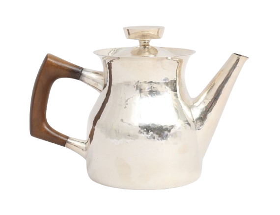 Kaffekanna silver, MGAB 1975, handtag av trä, total vikt 536 gram, höjd 15,5   |