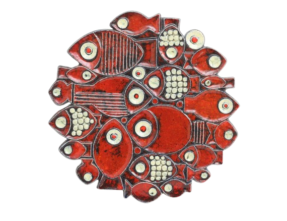 Gustavsberg, väggrelief glaserat stengods, dekor av fiskar, osignerad, 28x28  |