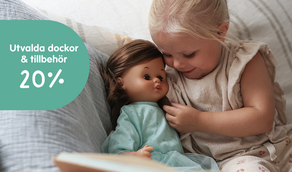 Just nu får du 20% rabatt på utvalda dockor och tillbehör. Perfekt läge att fylla på med dockor, vagnar och tillbehör som bjuder in till lek varje dag.