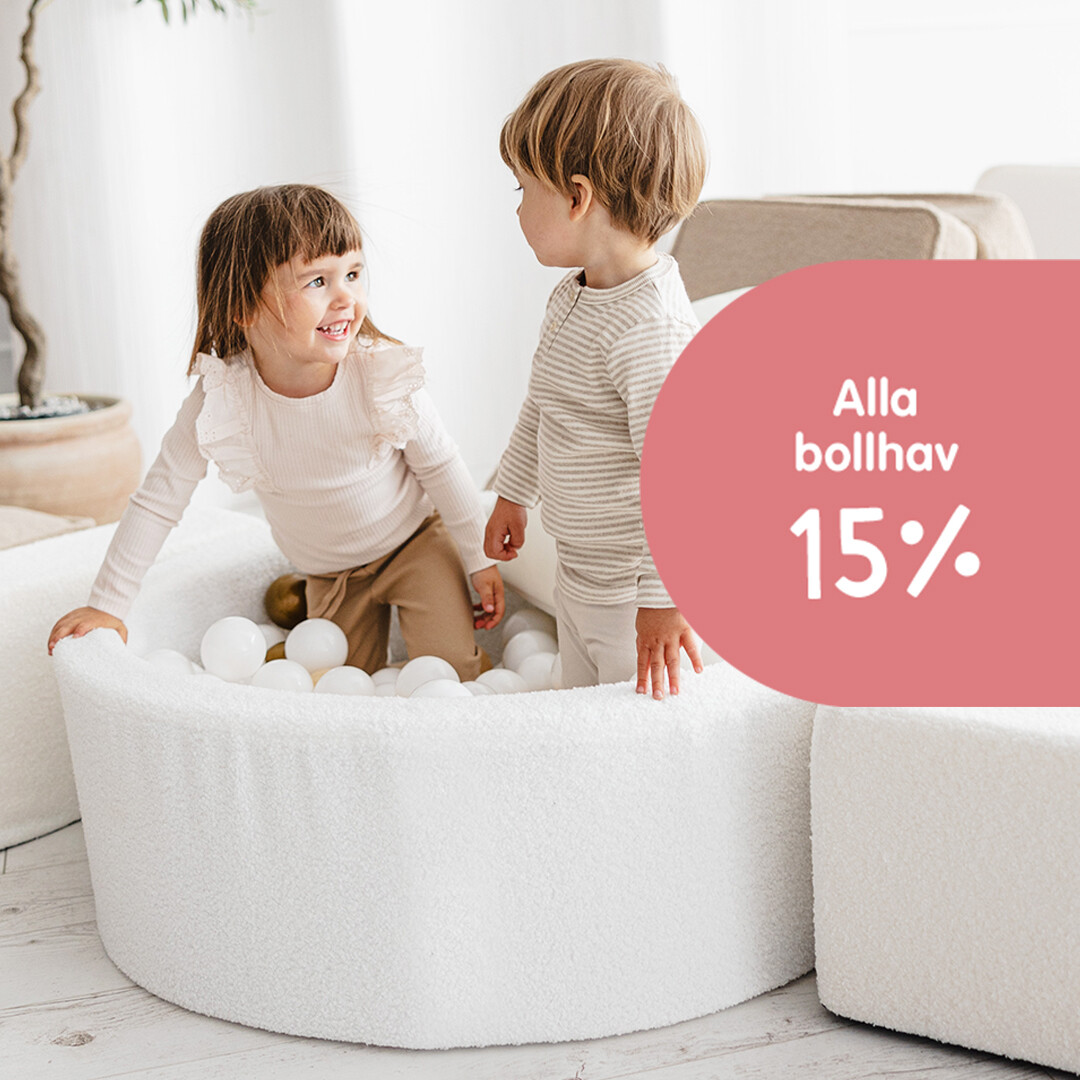 Nu får du 15% rabatt på alla bollhav. Välj bland flera härliga färger och mjuka tyger som manchester, plysch, jersey och bouclé – lika fina som de är roliga att leka i.