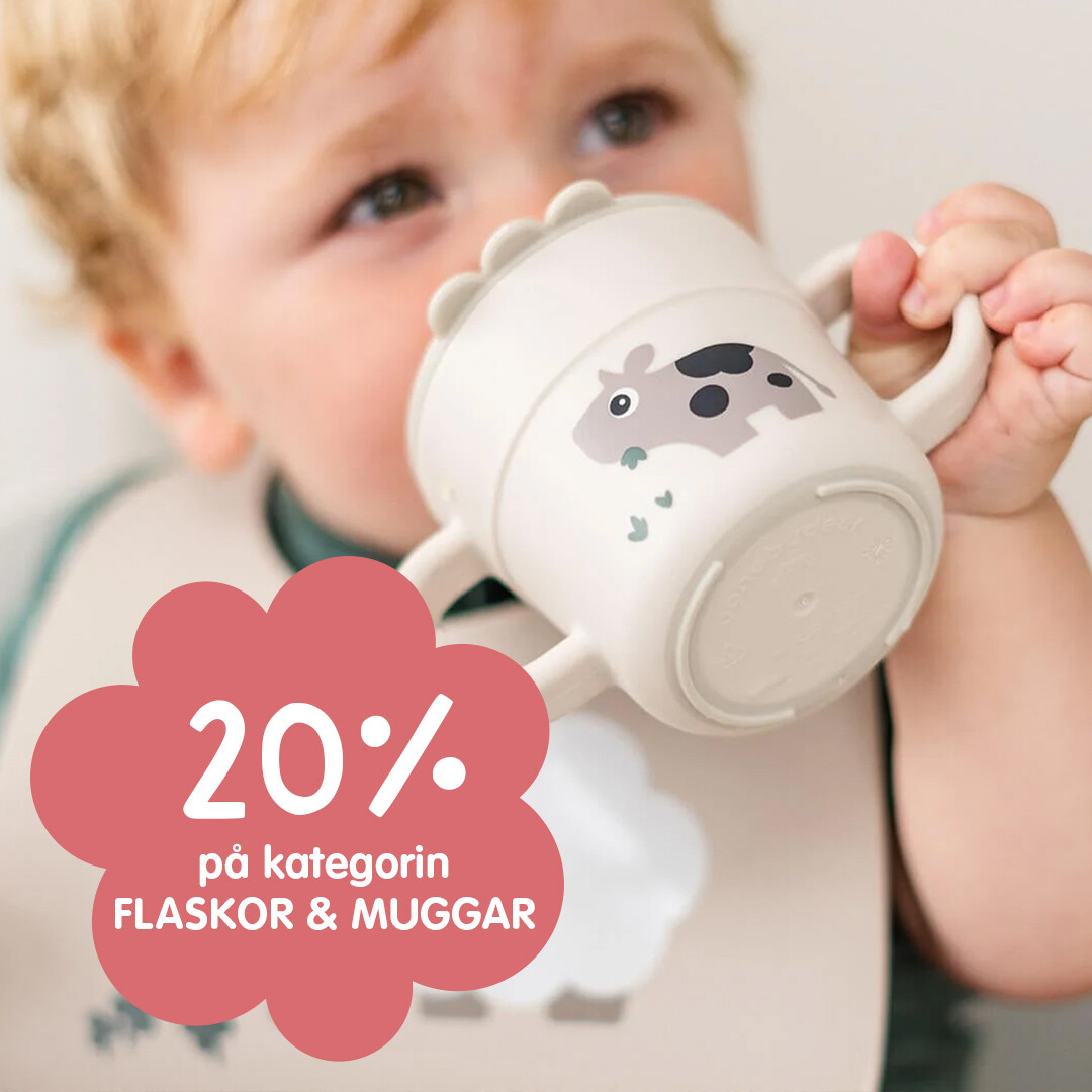 Just nu får du 20% rabatt på allt från kategorin Flaskor och Muggar. Välj bland mängder av fina pipmuggar, barnmuggar, glas och vattenflaskor för vardag, lek och utflykter.