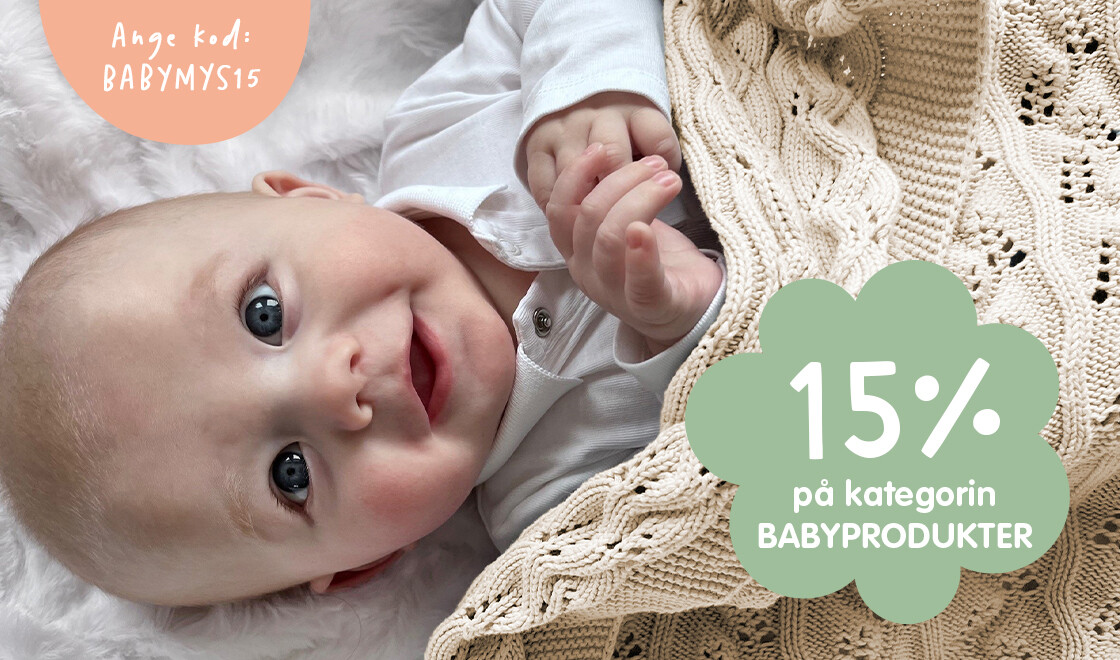 Nu får du även 15% rabatt på nästan hela kategorin Babyprodukter när du anger kod: BABYMYS15 i kassan.