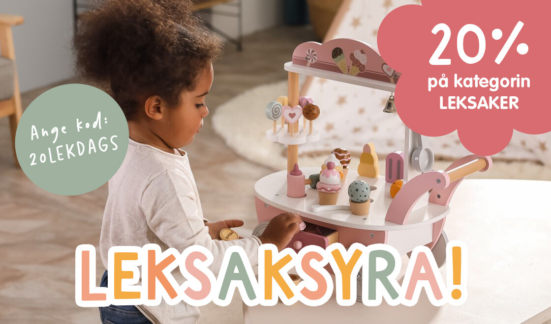 Nu är det sista chansen att ta del av kampanjerna 10% på utvalda barnvagnar & tillbehör med kod: BARNVAGN10 samt 20% på nästan hela kategorin Leksaker med kod: 20LEKDAGS.