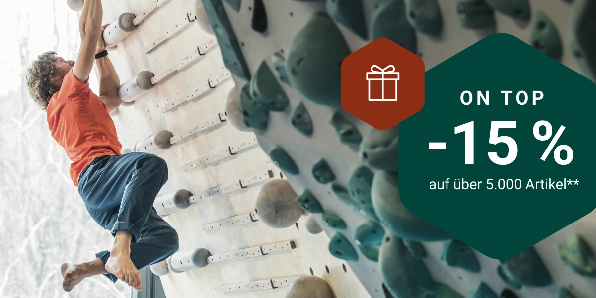 **Bei Eingabe des Gutscheincodes Newsletter15 gibt es 15% Rabatt auf gekennzeichnete Artikelvarianten. Gültig vom 12.12. bis 15.12.2025 ab einem Mindest-Einkaufswert von 100 € pro Bestellung (nach Retoure). Eine nachträgliche Gewährung des Rabattes ist nicht möglich. Bei einer Retoure wird der Gutschein-Rabatt von der Gutschrift abgezogen, wenn der Wert der behaltenen Ware unter 100 € liegt. Nicht kombinierbar mit anderen Aktions- und Clubgutscheinen. Nur im Bergzeit Online-Shop gültig, nicht in den Bergzeit Filialen und nicht für Bergzeit RE-USE.