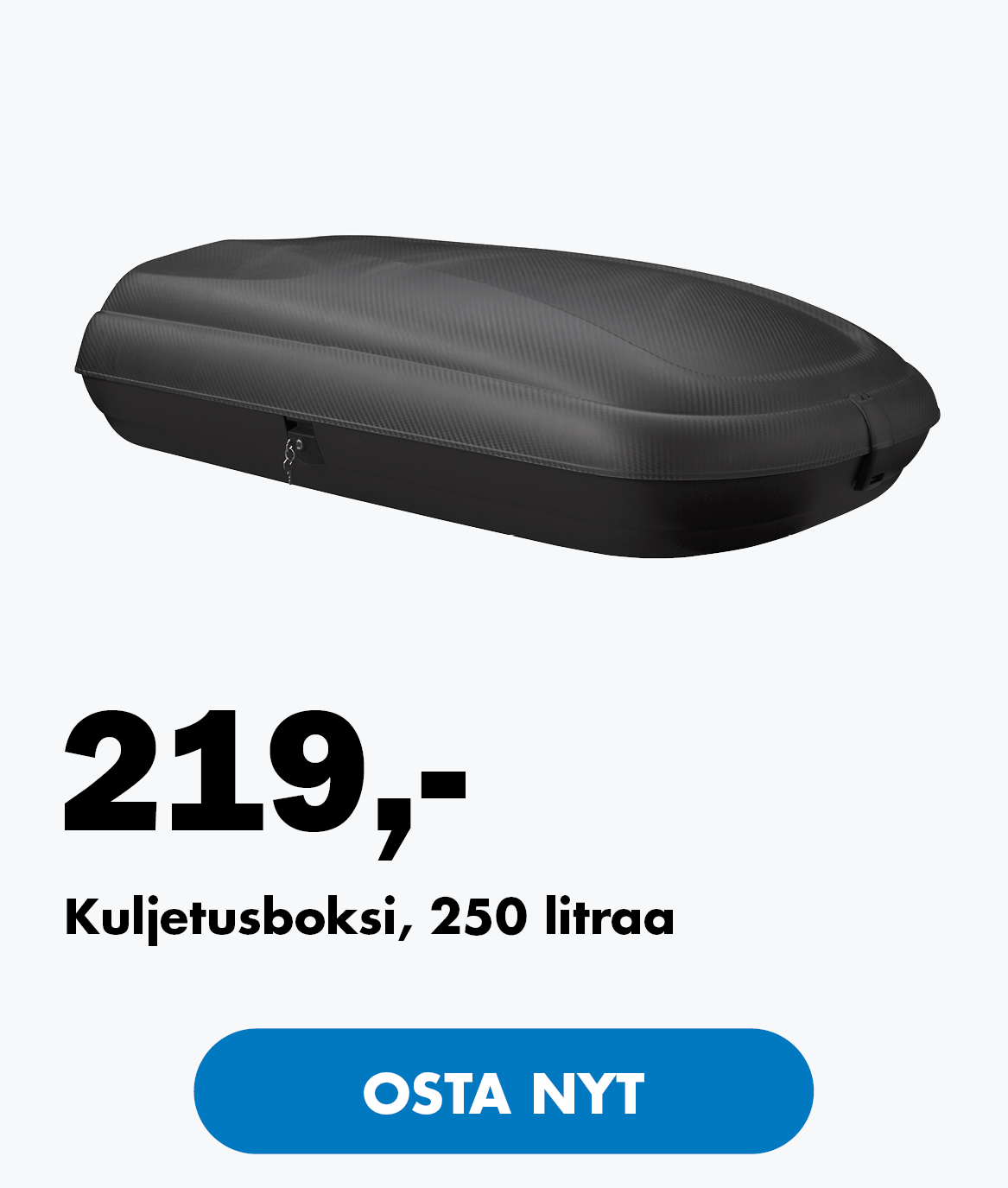 Aerodynaaminen muotoilu, hyvä vakaus ja pieni ilmanvastus. Valmistettu iskunkestävästä ja kylmänkestävästä polypropeenista, jossa on tyylikäs hiilikuituilme.