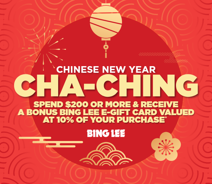 *Make a single transaction purchase of over $200 of qualifying products in-store or online at www.binglee.com.au between 13/02/26 and 22/02/26 (inclusive) (“Promotional Period”), pay in full, and take full delivery of the qualifying purchase within ninety (90) days of the purchase date to receive a Bing Lee Bonus eGift Card (“Bonus eGift Card”) valued at 10% of the total qualifying purchase price. Offer excludes Apple, Dyson, LG whitegoods, Sony products, and all Proforma brands (including, but not limited to Asko, Bertazzoni, BH Fitness, Falcon, Falmec, Fisher & Paykel Agency, Liebherr, Miele, Neff, Smeg Agency, Turner & Hastings), Gift Cards, Deliveries, Services, Extended Warranties, products not listed for sale on Bing Lee’s website, out-of-stock items, pre-orders, or backorders. Offer is available while stocks last and may be withdrawn, suspended, or extended at Bing Lee’s discretion. Bonus eGift Card can only be used on future purchases and can be redeemed at any Bing Lee retail store or online at www.binglee.com.au within three (3) months of issue, is not refundable or exchangeable, and cannot be used to purchase Gift or Bonus Gift Cards (including eGift Cards). This Promotional Offer is not available on eBay or any other site, and cannot be used in conjunction with any other offer (including, but not limited to Bing Lee’s Price Match Policy) or promotion. Bonus eGift Card will be issued within 48 hours after the customer has taken full delivery of the qualifying purchase. If a qualifying purchase is cancelled or returned by the customer, the unused Bonus eGift Card must be returned to Bing Lee or its value deducted from any refund. Offer is for personal shoppers only and not available to commercial, wholesale, corporate, or bulk-buy customers. Bing Lee reserves the right to verify purchases and refuse, withhold, or cancel the issue of a Bonus eGift Card where Bing Lee reasonably believes there has been fraud, tampering, misuse, or a breach of these terms and conditions. Nothing in these terms and conditions affects any rights available to consumers under the Australian Consumer Law. Conditions apply. Visit