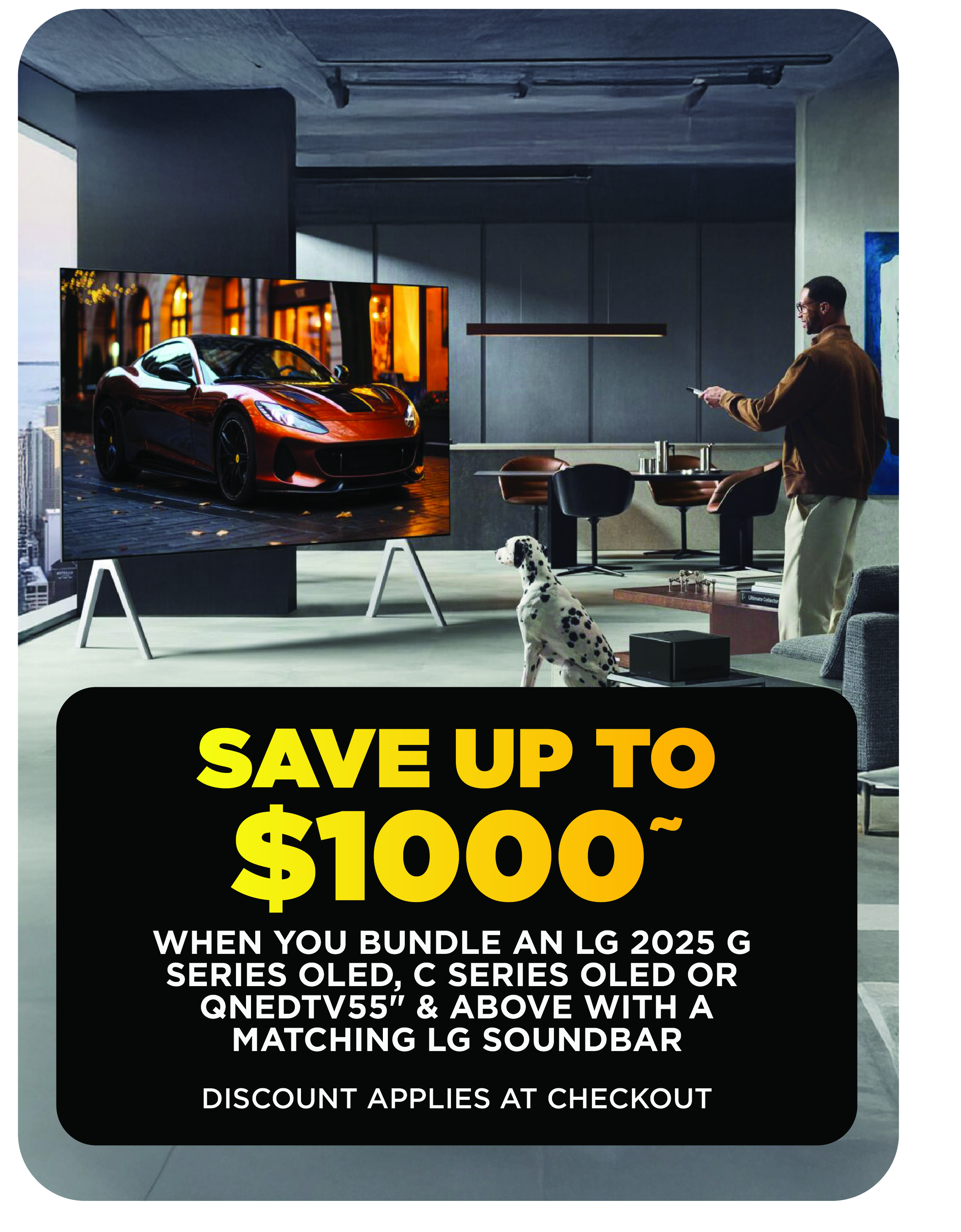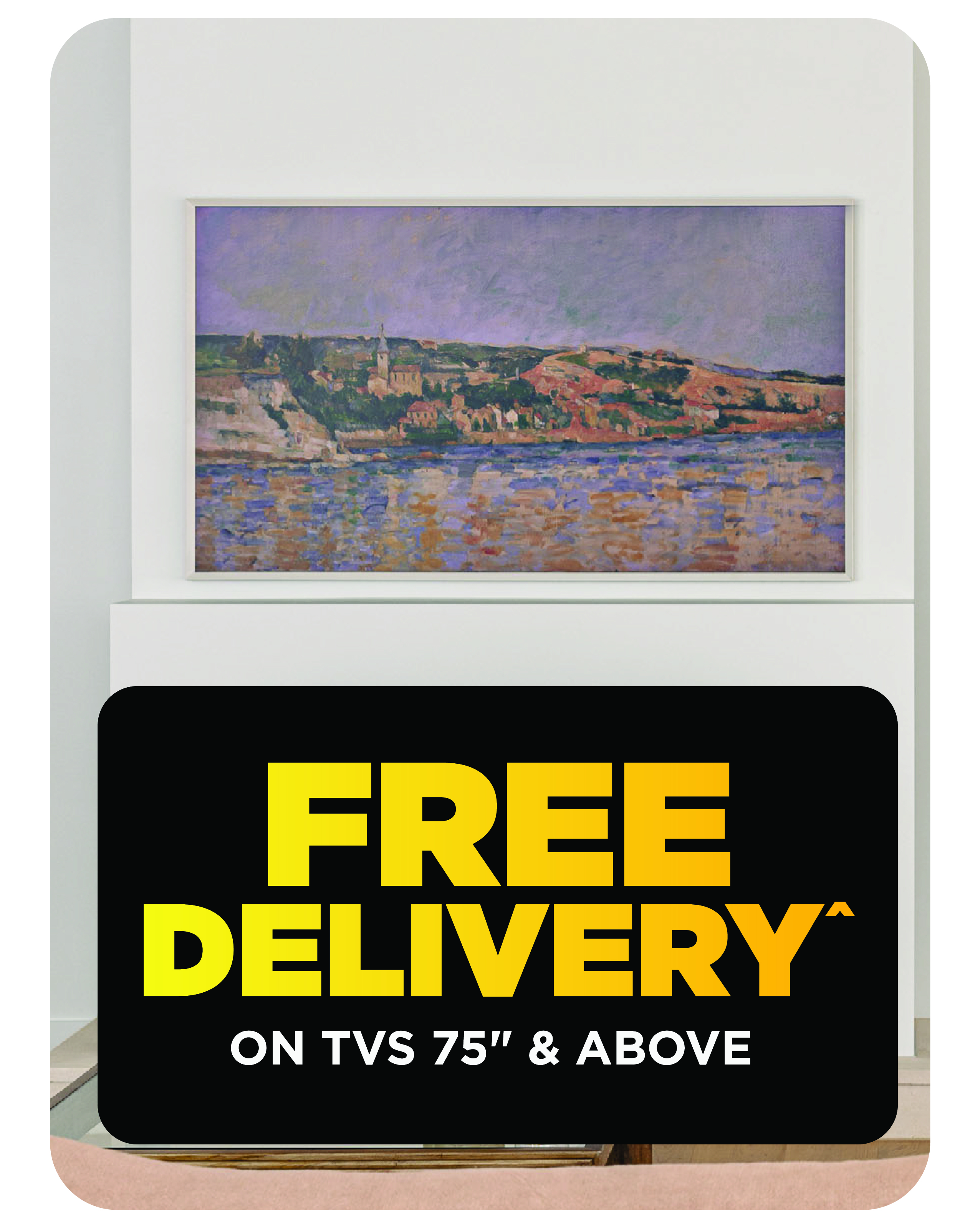 ^Purchase a qualifying TV 75" and above ("Participating Product(s)") from a Bing Lee bricks and mortar retail store or online at www.binglee.com.au and receive Free Door to Door Delivery Service. This promotion is available on eligible purchases made from 18/12/25 to 31/12/25 (inclusive), while stocks last and may be withdrawn or extended at any time by Bing Lee ("Promotional Period"). The Door to Door Delivery Service (Monday to Saturday only) is a drop off service only. This offer is available in selected metropolitan areas of Sydney, Brisbane and Melbourne (for online purchases, qualifying delivery areas will be confirmed at checkout), as well as limited areas within 40 kms of Bing Lee Regional Store locations in both NSW and Interstate. Excludes Asko, Miele, Agency and all Proforma brands. Offer available to personal shoppers only. Conditions apply. For full terms and conditions, please visit www.binglee.com.au/help/delivery-services.