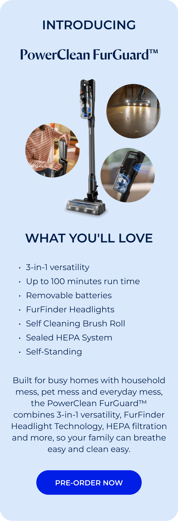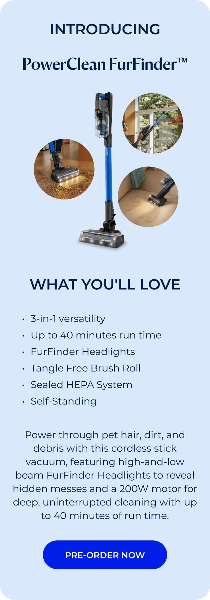 The PowerClean FurFinder™, purpose-built for homes with pets, and the PowerClean FurGuard™, engineered for next-level control, power, and precision.