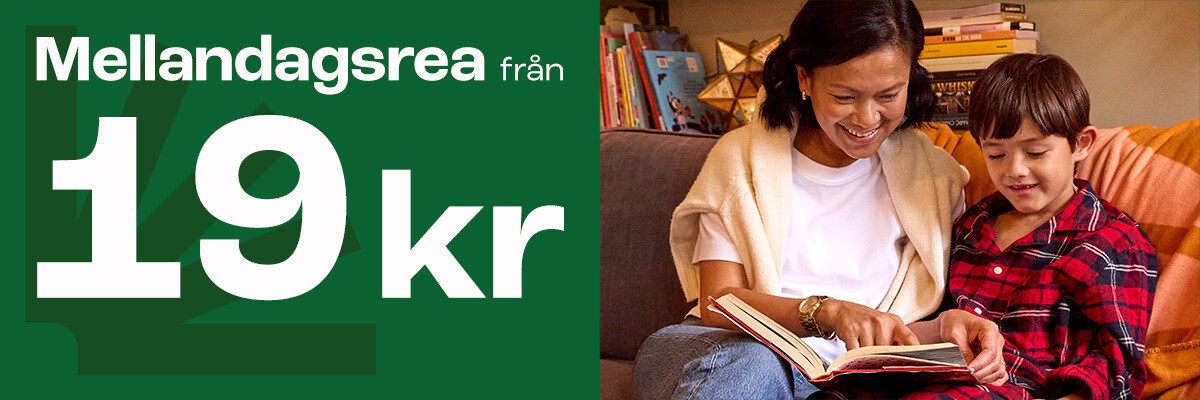 Mellandagsrean går mot sitt slut. Fynda böcker för hela familjen till riktigt bra priser – från 19 kr. Romaner, deckare och barnböcker väntar, men skynda dig: imorgon är sista dagen.
