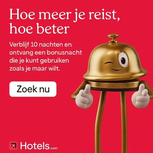Bij Hotels.com wordt reizen nog leuker! Boek en verblijf 10 nachten bij deelnemende accommodaties, en ontvang 1 nacht helemaal gratis. Of je nu kiest voor een luxe resort, een gezellig boutiquehotel of een knus appartement: door deze actie kun je extra lang en voordelig genieten!